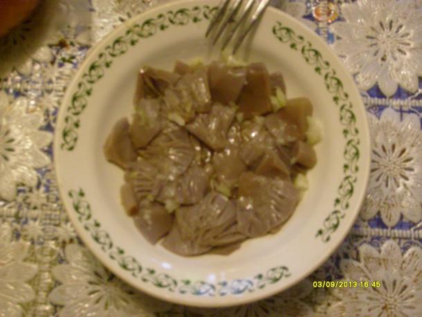рядовка фиолетовая,варить 20 мин. в подсоленной воде,достать+лучок,укропчик,растмасло....похоже на пельмешки.