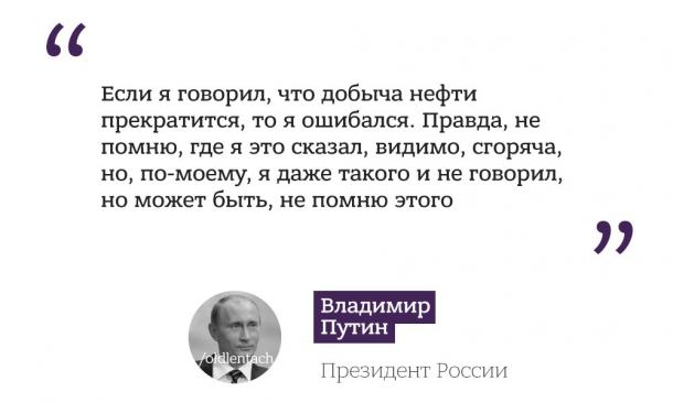 17 октября 2014 года в ходе визита в Италию российский лидер заявил, что добыча нефти при цене ниже $80 нерентабельна и никто из участников рынка в этом не заинтересован - цитата. это не значит -что дОбыча прекратится. вот так рождаются мифы. стараниями журна*люшек